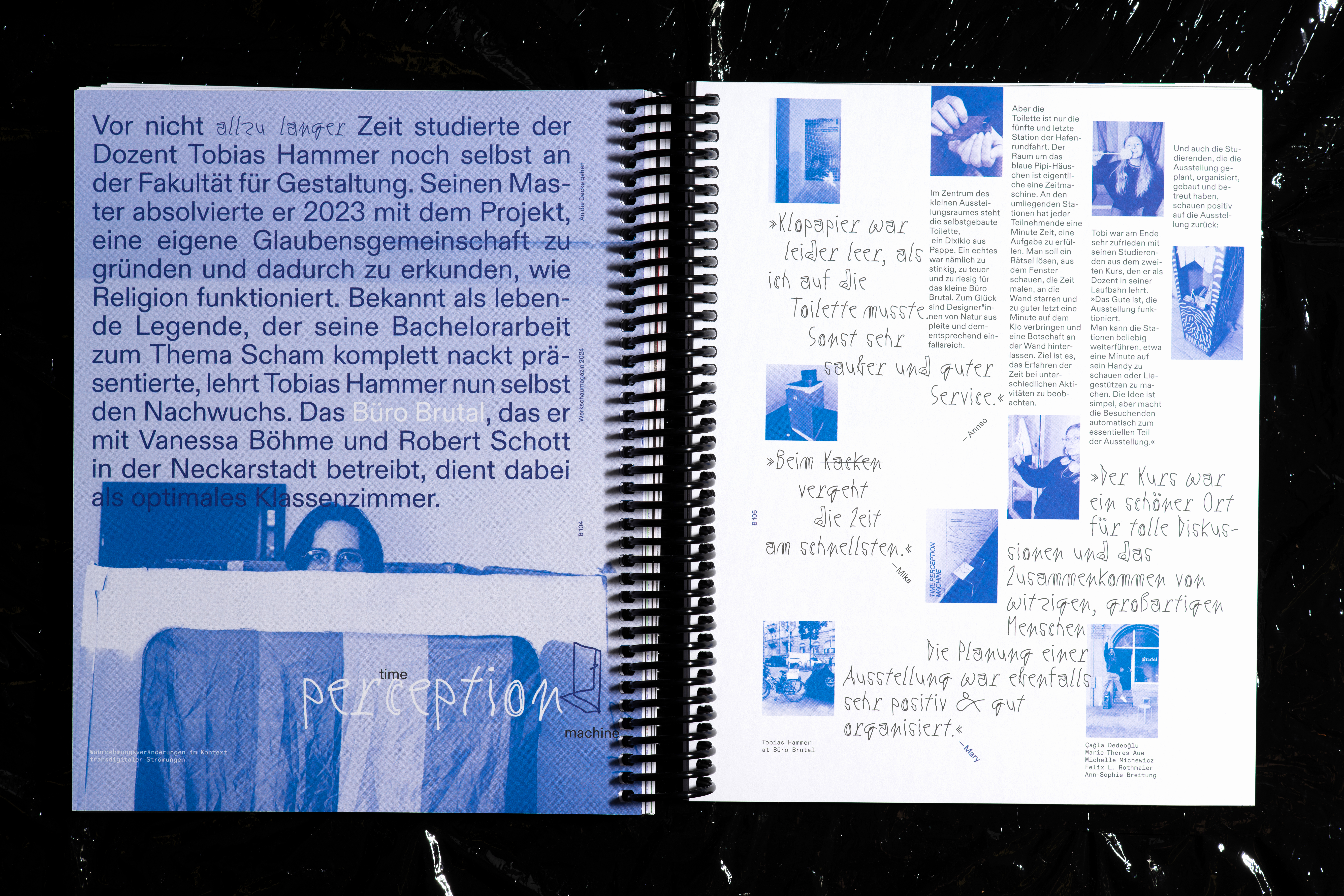 Spanning 152 pages under the theme “RGB and Freaking Out,” the publication offers insights into courses, highlights the best bachelor’s and master’s thesis projects in communication design, and looks to the future. The idea of “freaking out” doesn’t just symbolize the 100-year celebration but can also be taken literally—breaking out of the grid. Typography plays a subtle role in this rebellion, causing disruptions without losing clarity in its design.